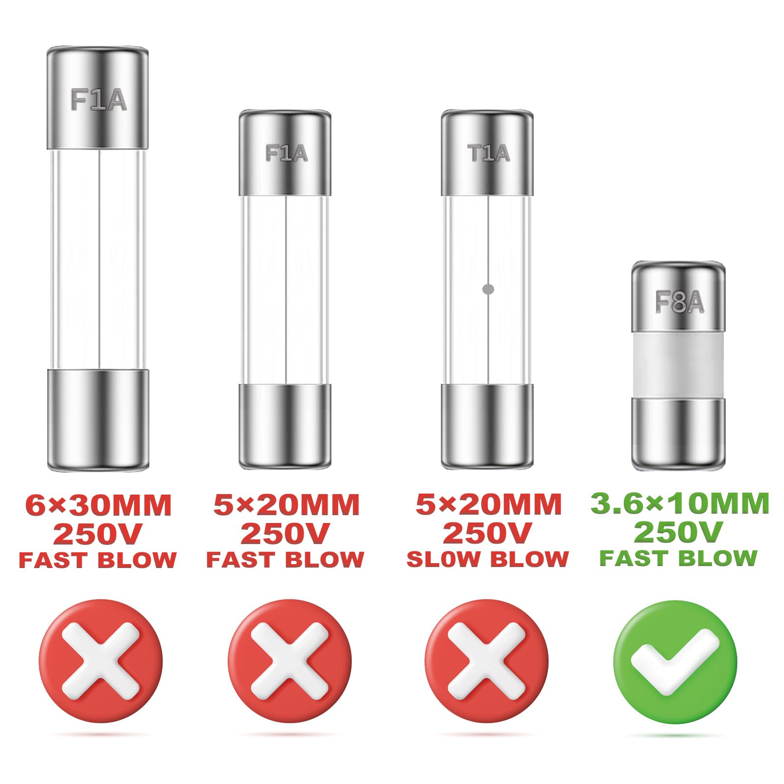 - ALLECIN 8A 250V 3.6X10MM/0.14x0.3inch Ceramic Fuse can meet your daily maintenance needs for travel Power Adapter.