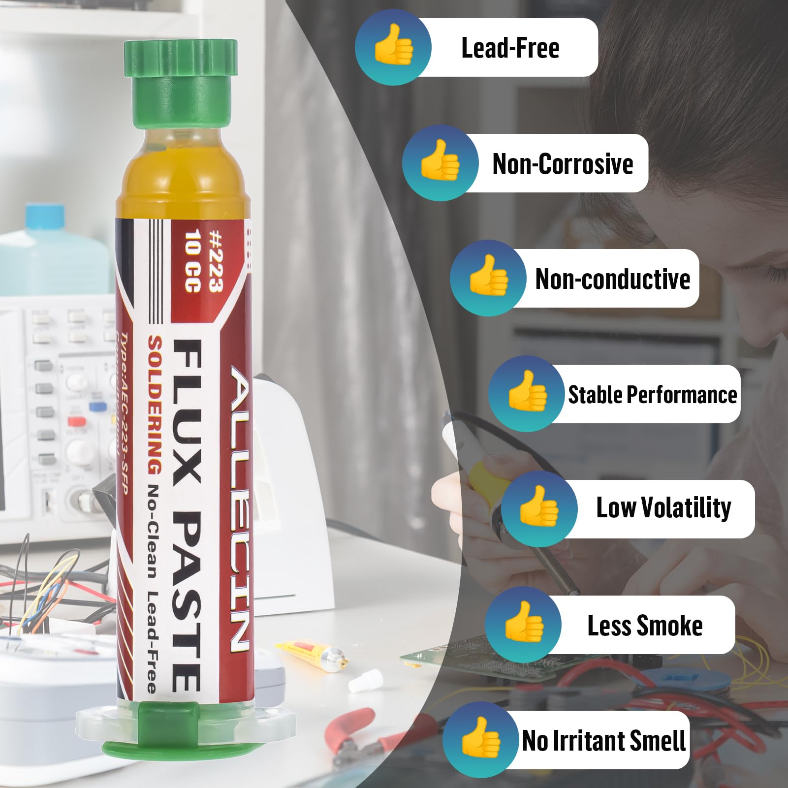 - ALLECIN No Clean Soldering Flux 223 10CC 10mL -- For solder repair work on a variety of electronic equipment.